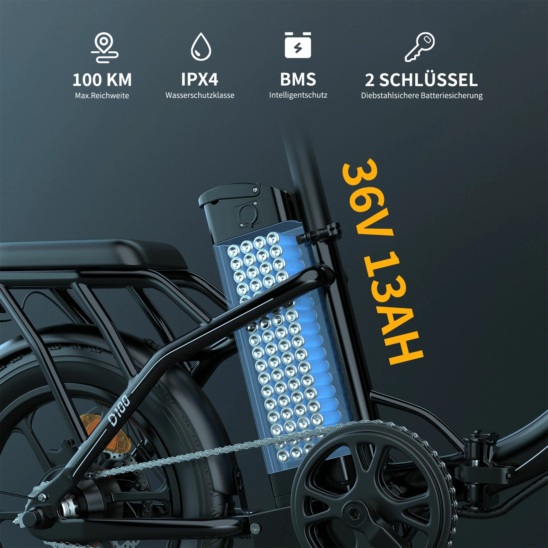 250W Motor | 36V 13AH Battery | 40km/h Speed | 100km Range