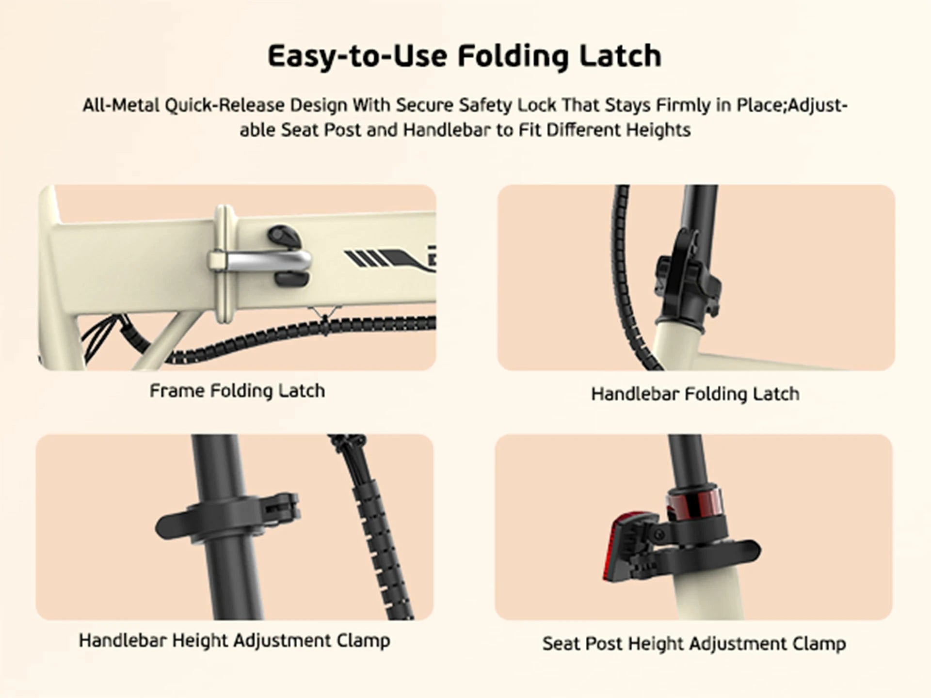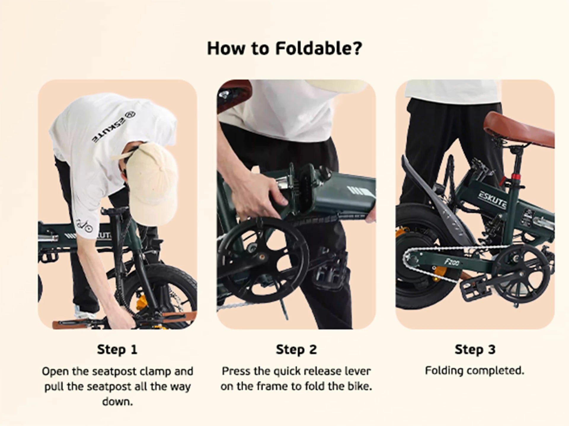 This electric bike is a game-changer for my daily routine in Europe! I no longer have to worry about finding parking or sitting in traffic jams during rush hour. The motor is powerful and efficient, and the battery lasts for multiple days of commuting and errands. Folding is simple and quick, taking less than a minute, and it's lightweight enough to carry when needed. The brakes are responsive and the ride quality is exceptional on all types of city surfaces.